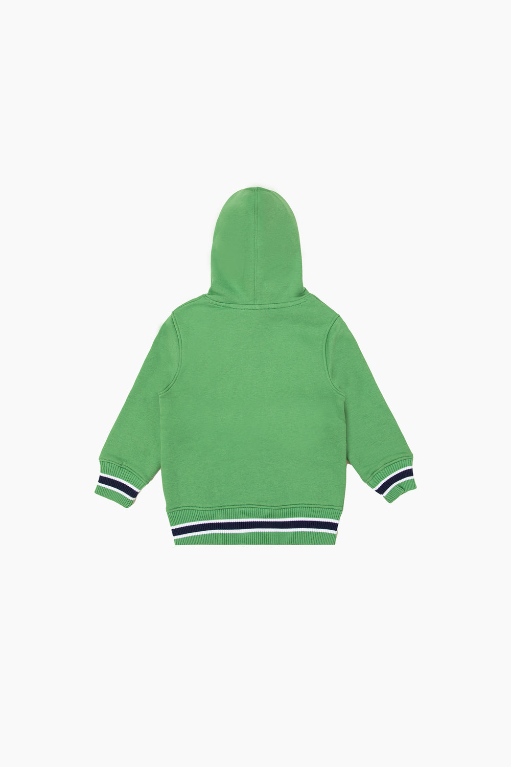 Pullover hoodie in fleece fabrication, featuring drawcorded hood and contrasting rib with embroidery in front