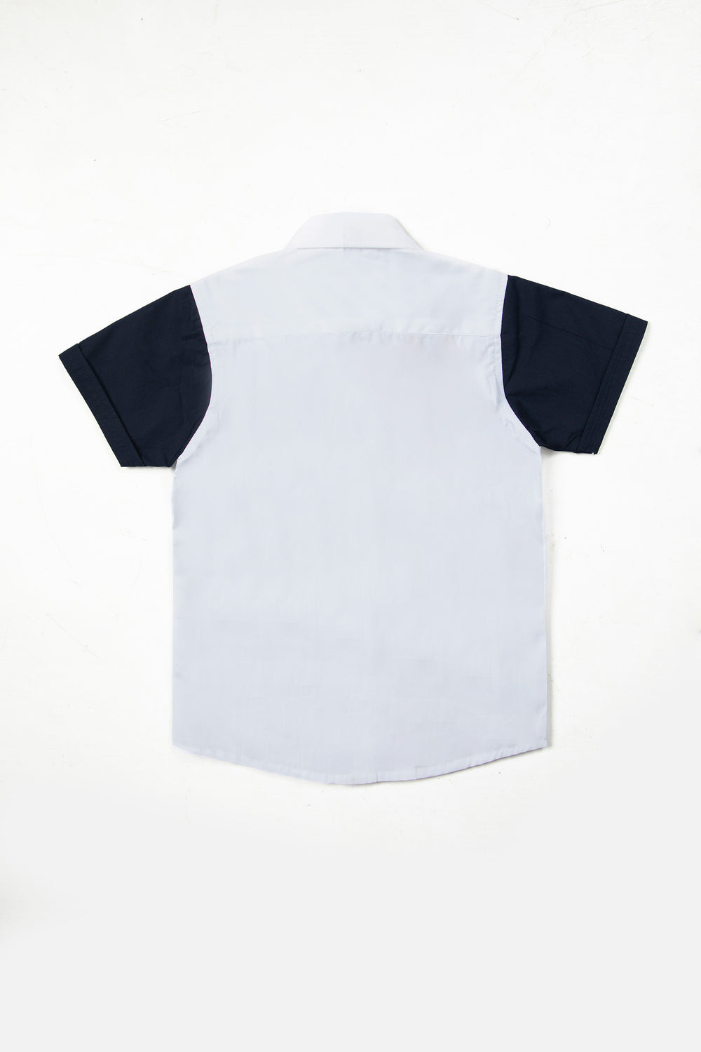 Short sleeve shirt in cotton fabrication, featuring collar with front buttoned placket and print in front