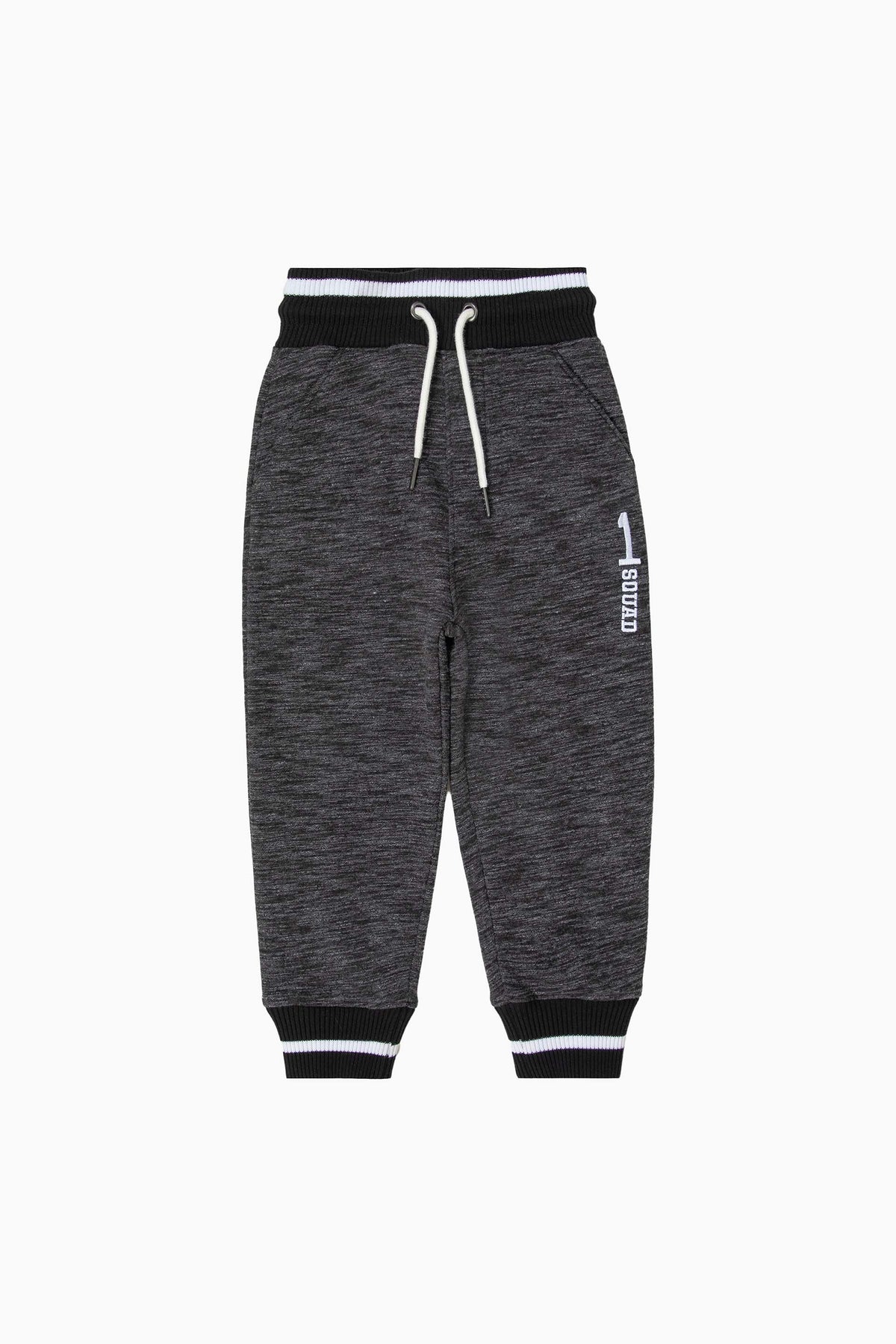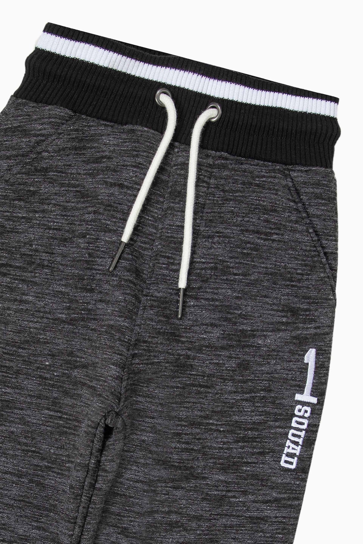 Fleece track pants, featuring elasticated waistbelt with drawcord and embroidery detail in front