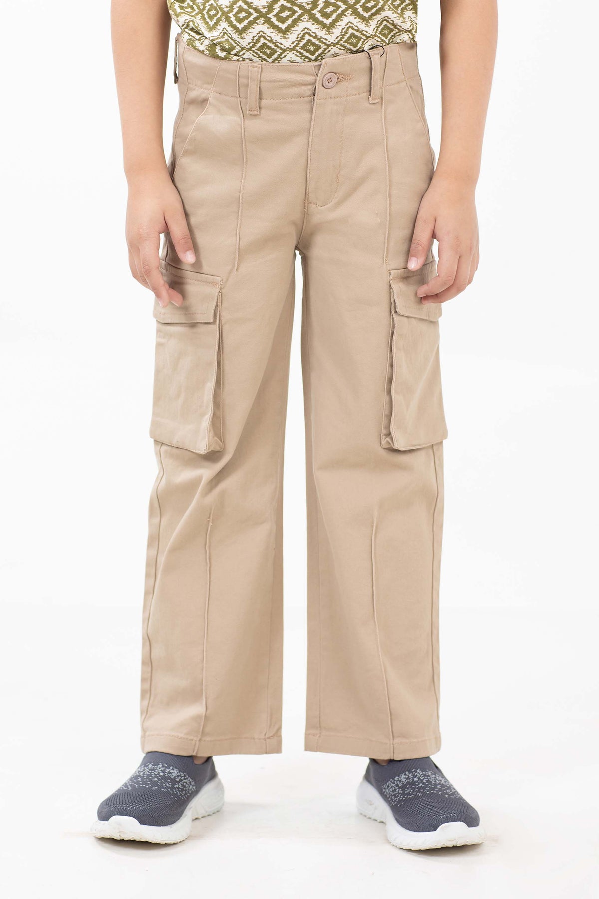 Baggy fit cargo pants in twill fabrication, featuring front fly opening and side cargo pockets