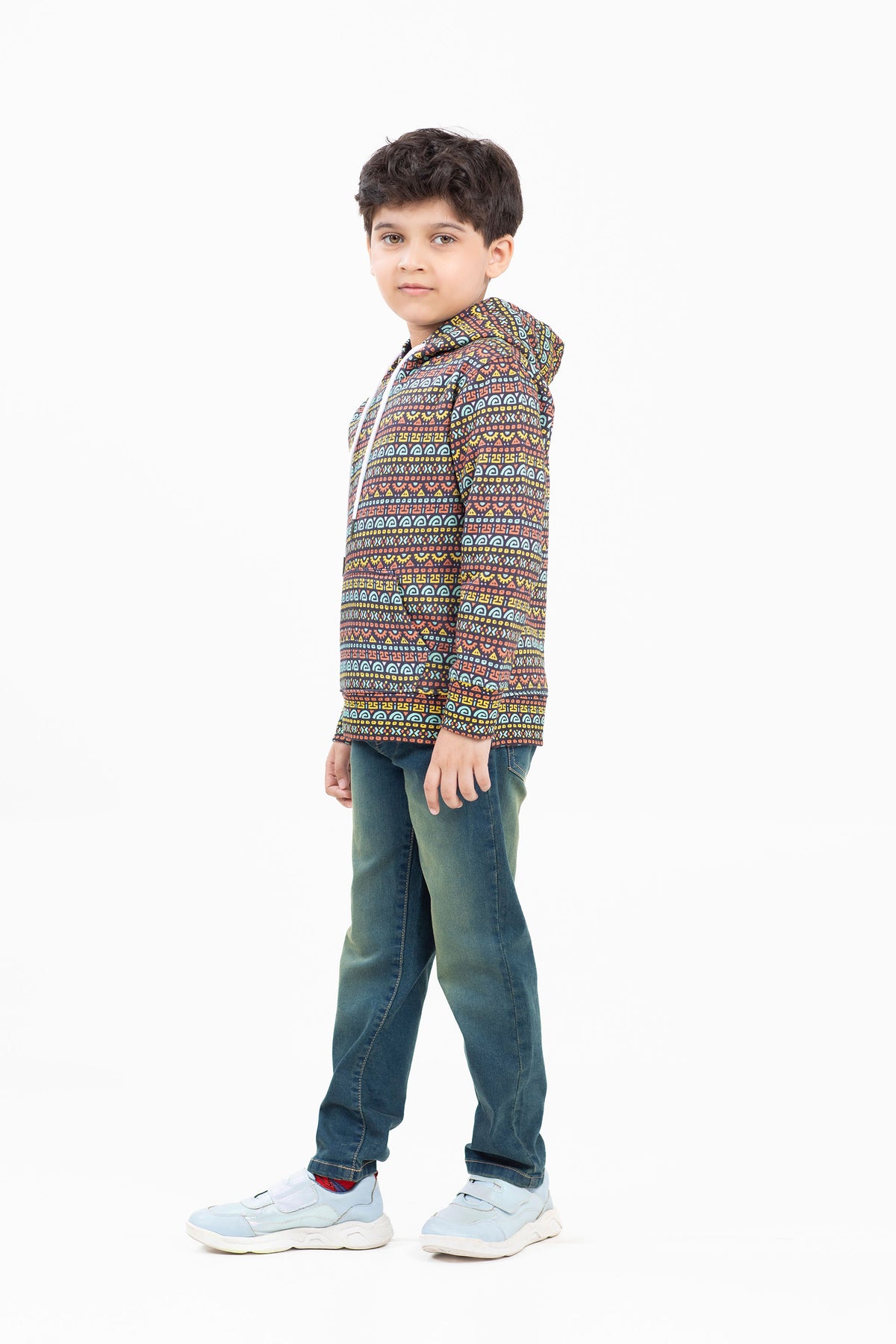 Pullover hoodie in fleece fabrication, featuring drawcorded hood and an over all print