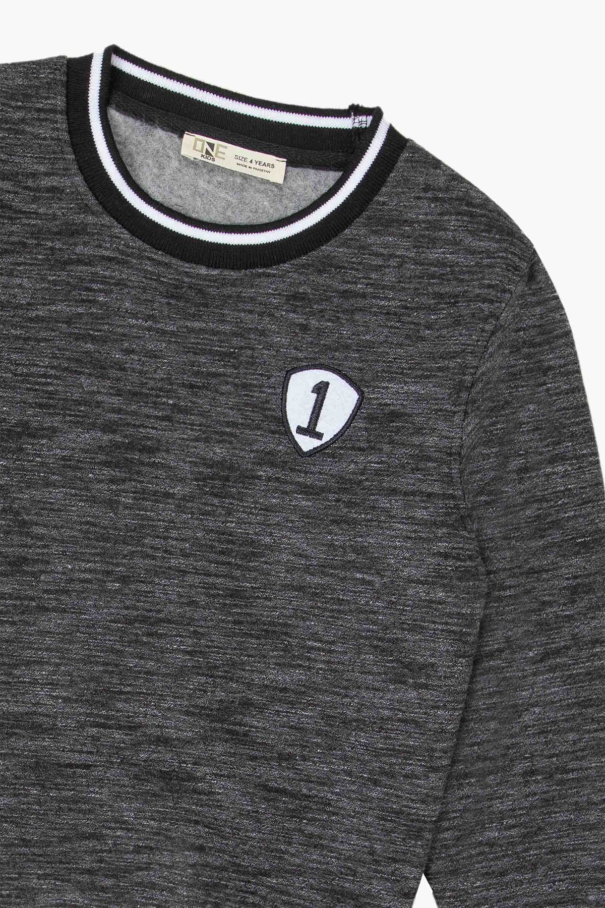 Crew neck sweatshirt in textured fleece fabrication, featuring badge detailing in front