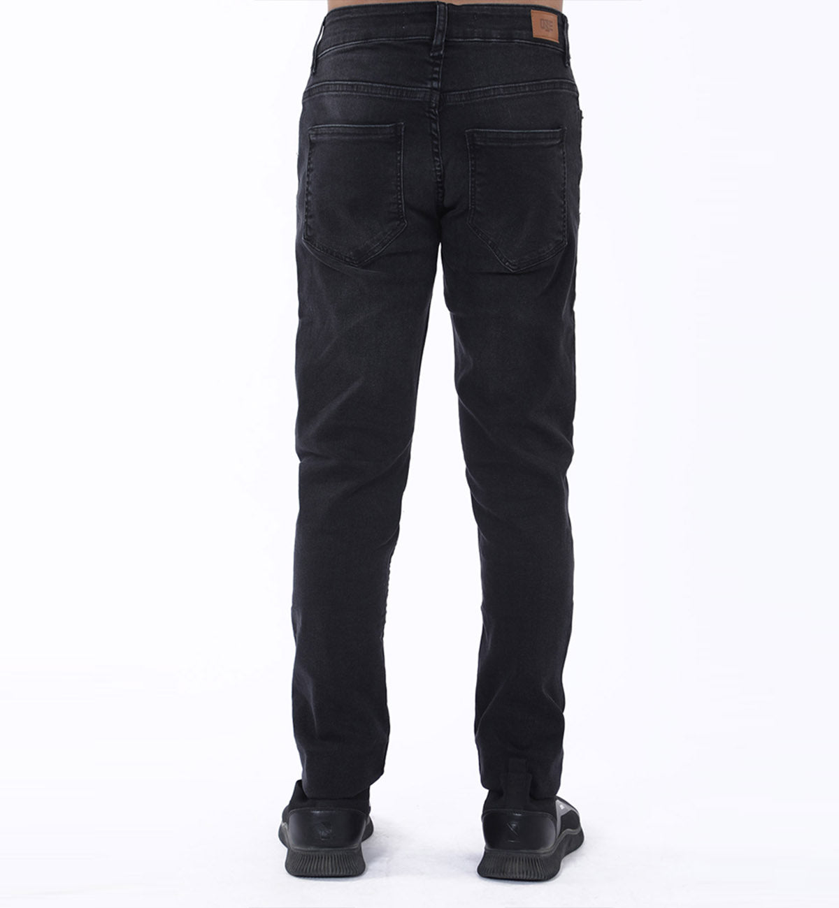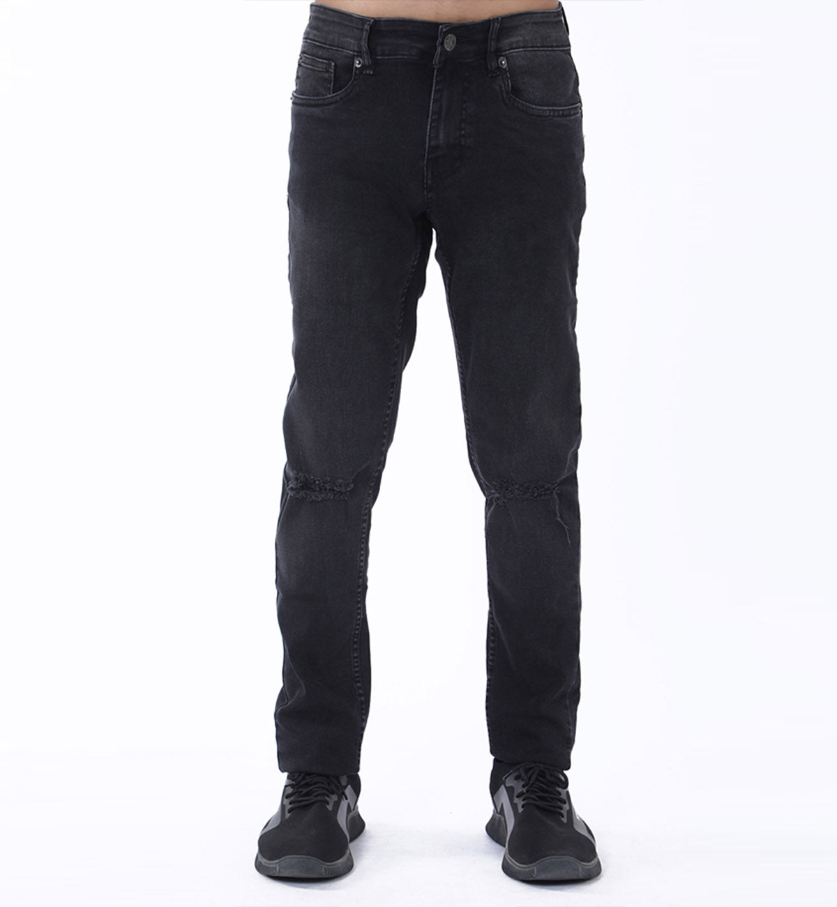 Skinny denim jeans, featuring ripping at knees, five pockets and front fly opening