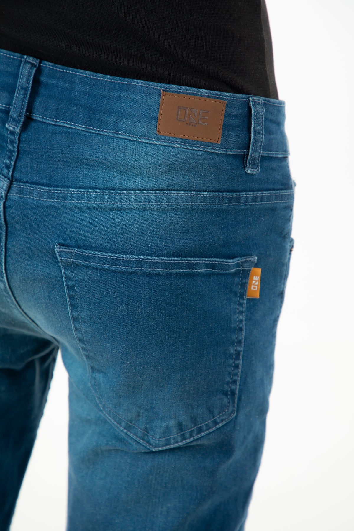 Basic skinny fit jeans in denim fabrication, featuring five pockets and front fly opening