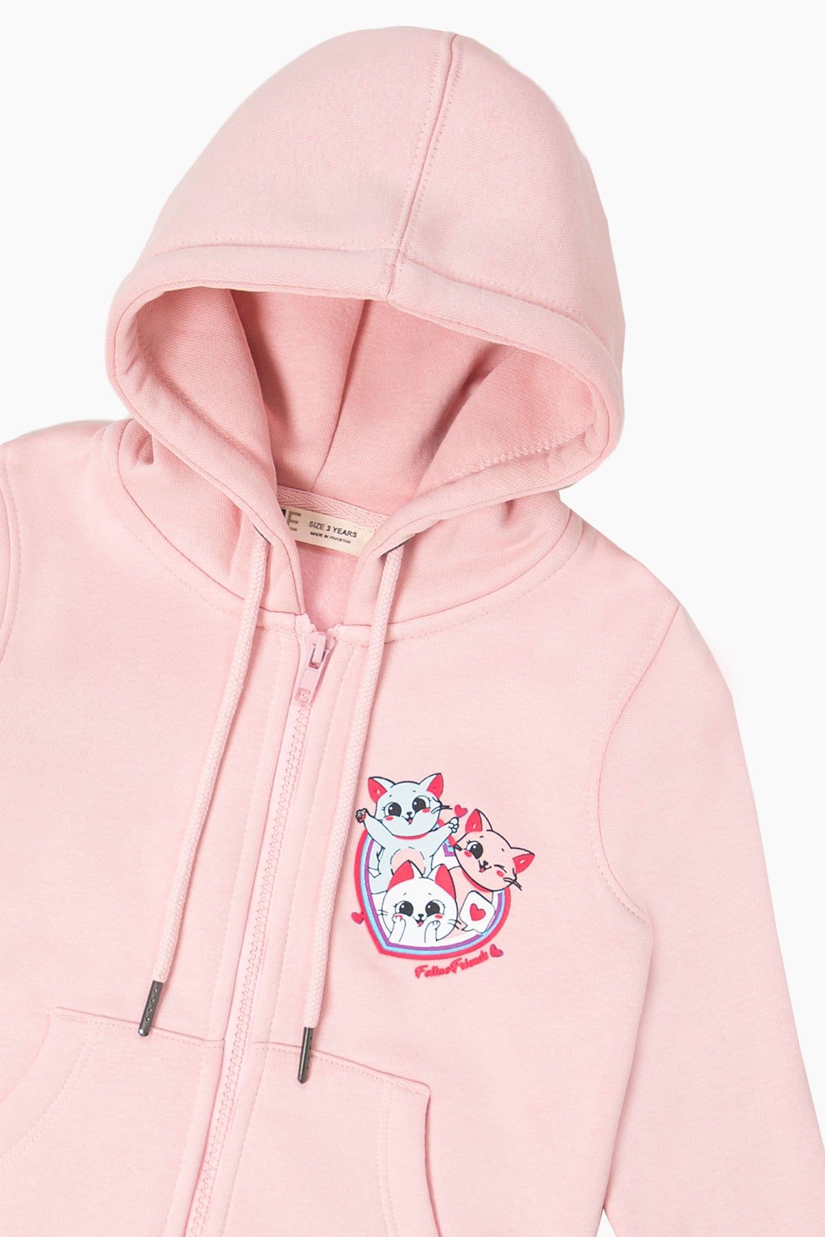 Zipper hoodie in fleece fabrication, featuring drawcorded hood and kangroo pocket and print in front