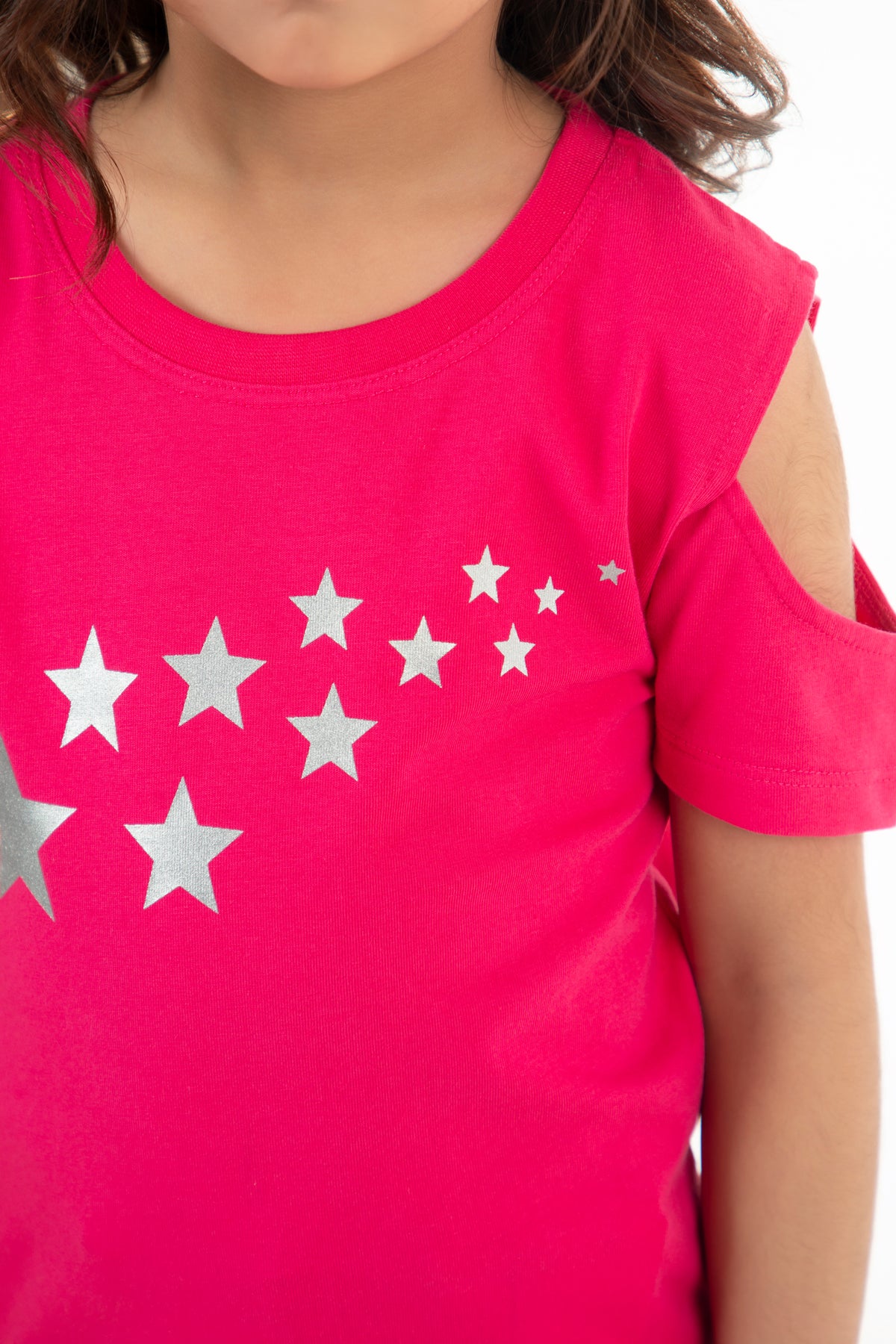 Regular tee shirt in jersey fabrication, featuring crew neck, cold shoulder sleeves and print in front