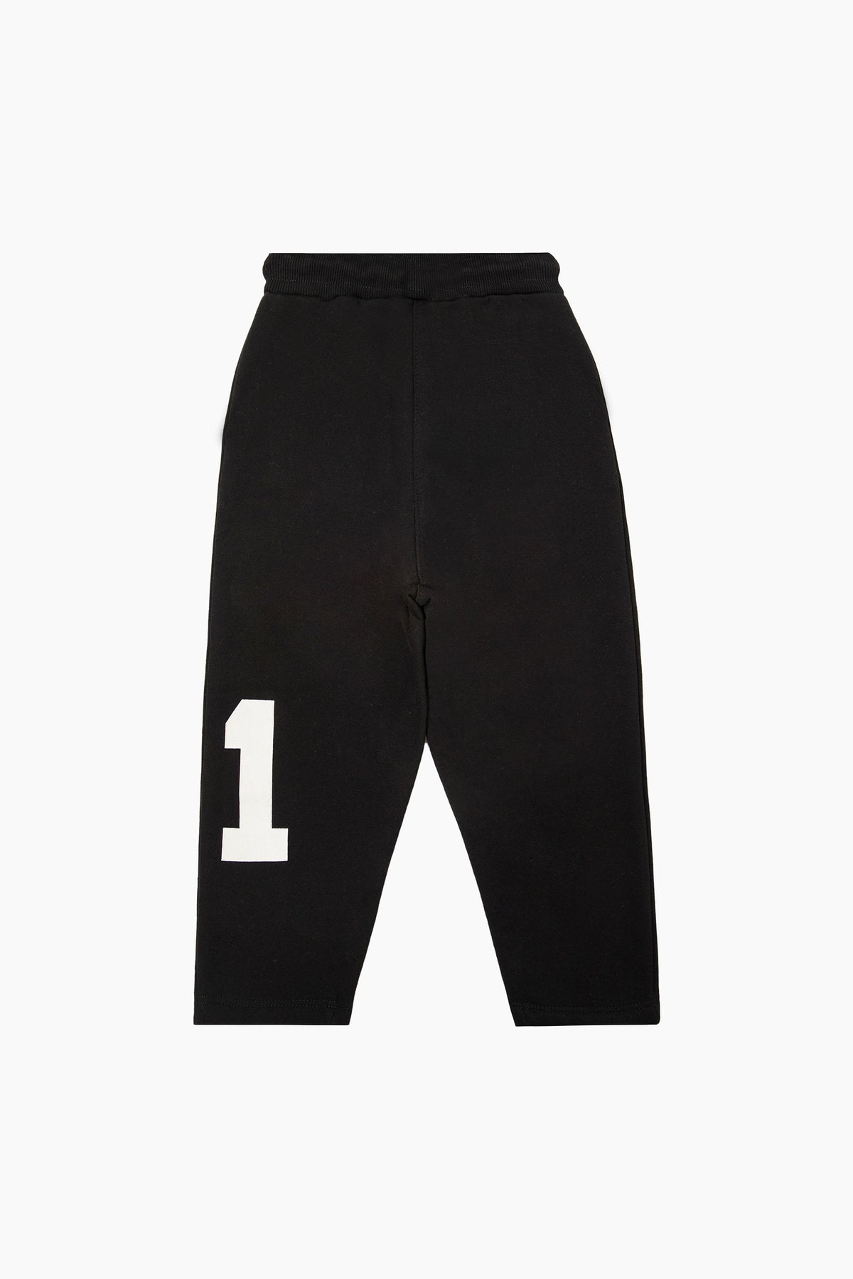 Open hem fleece trousers, featuring elasticated waist belt with drawcord and print in front