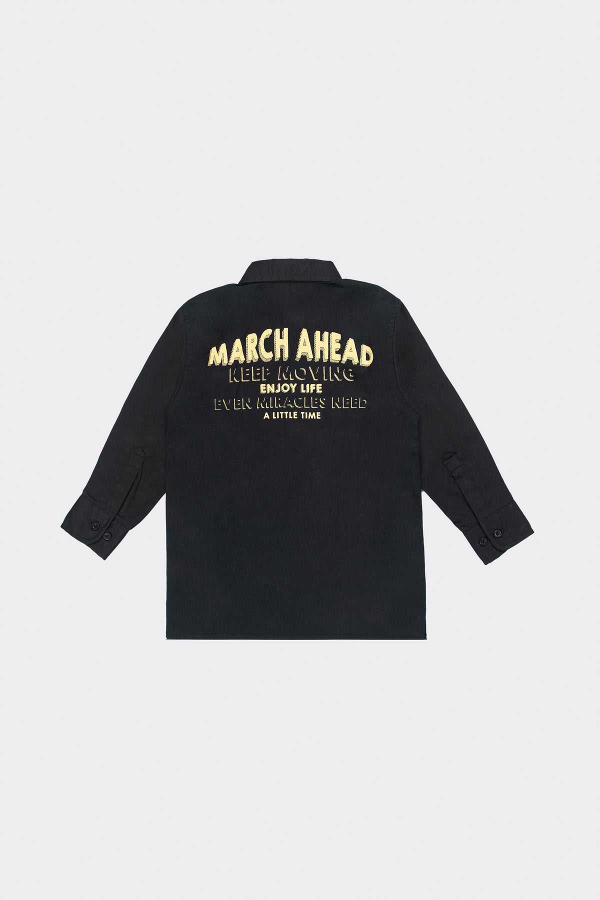 Regular fit shirt in cotton fabrication, featuring collar with front buttoned placket and print at back