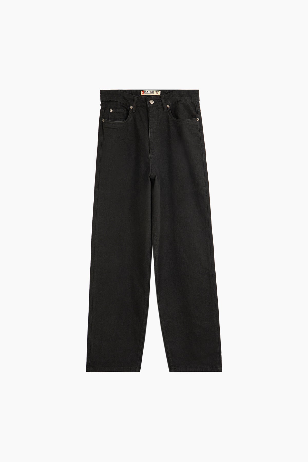 Basic baggy fit jeans in denim fabrication, featuring five pockets and front fly opening