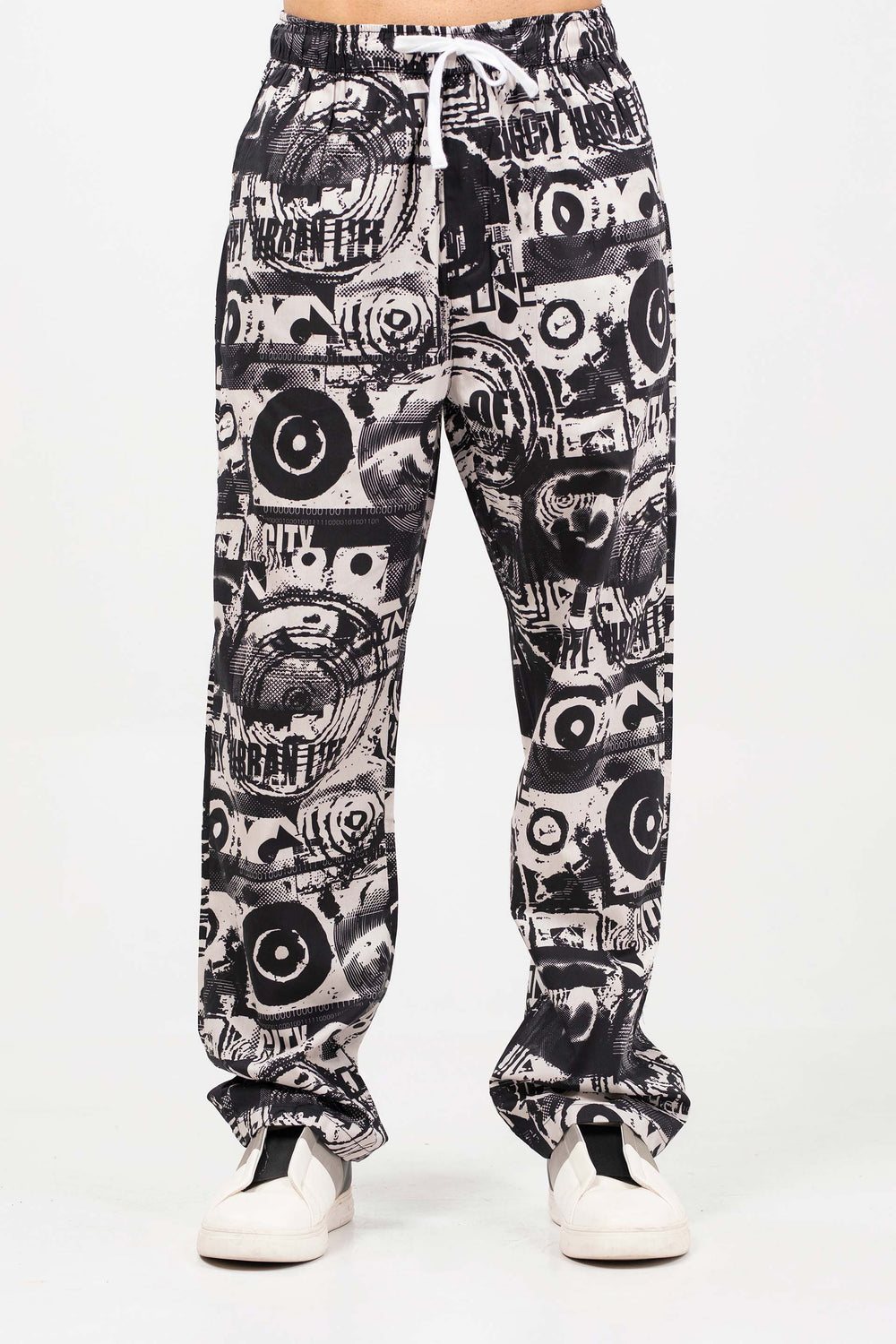 Relax fit trousers in printed cotton, featuring elasticated waist belt with drawcord and cross pockets
