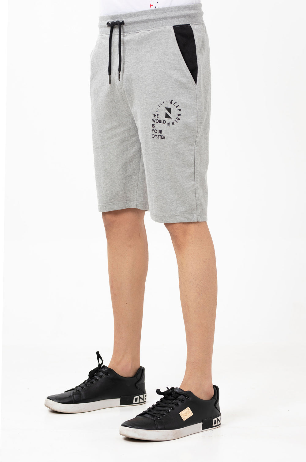 Terry shorts, featuring drawcorded waist belt, side pockets and print in front