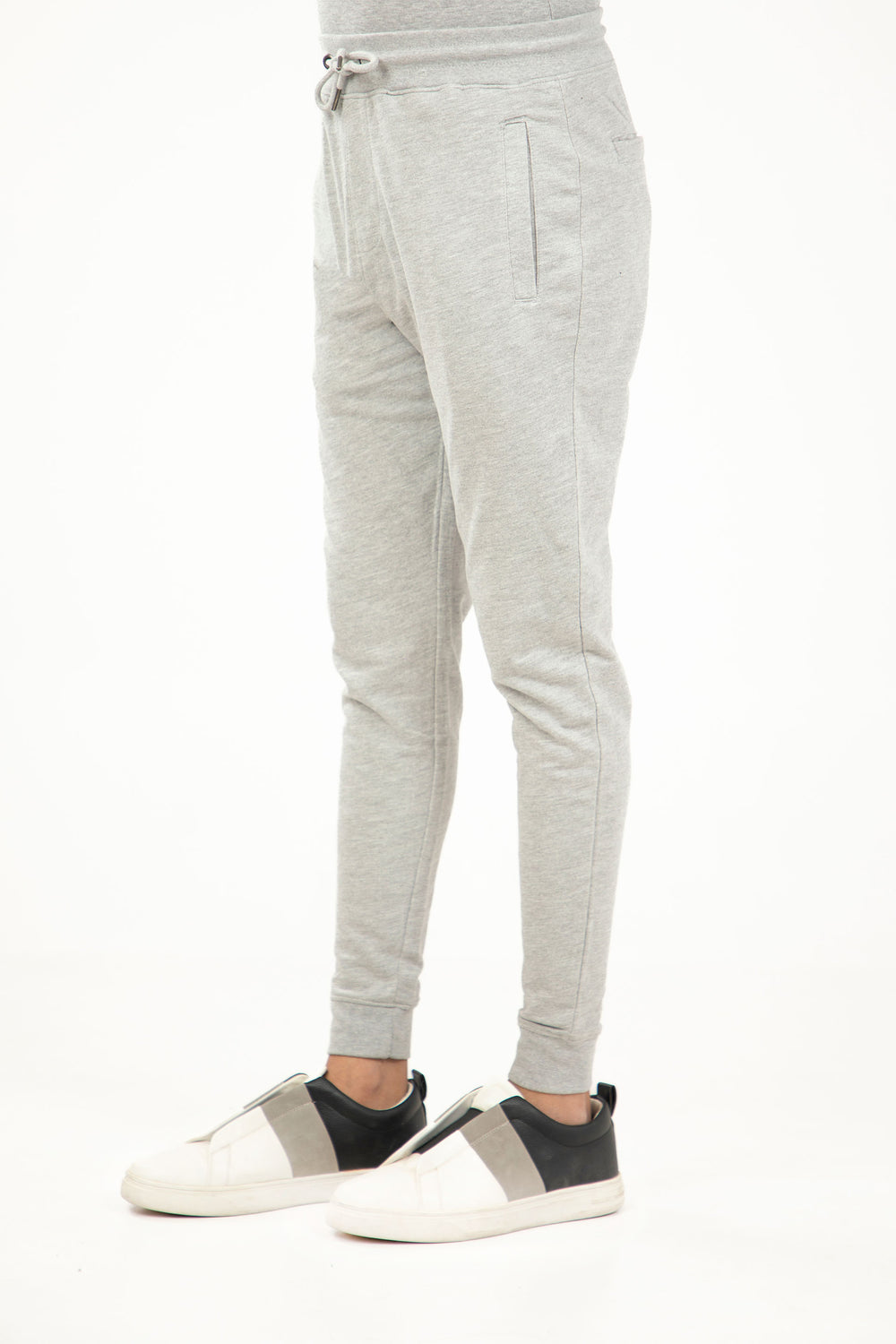 Basic terry track pants, featuring drawcorded waist belt, side pockets and ribbed hem