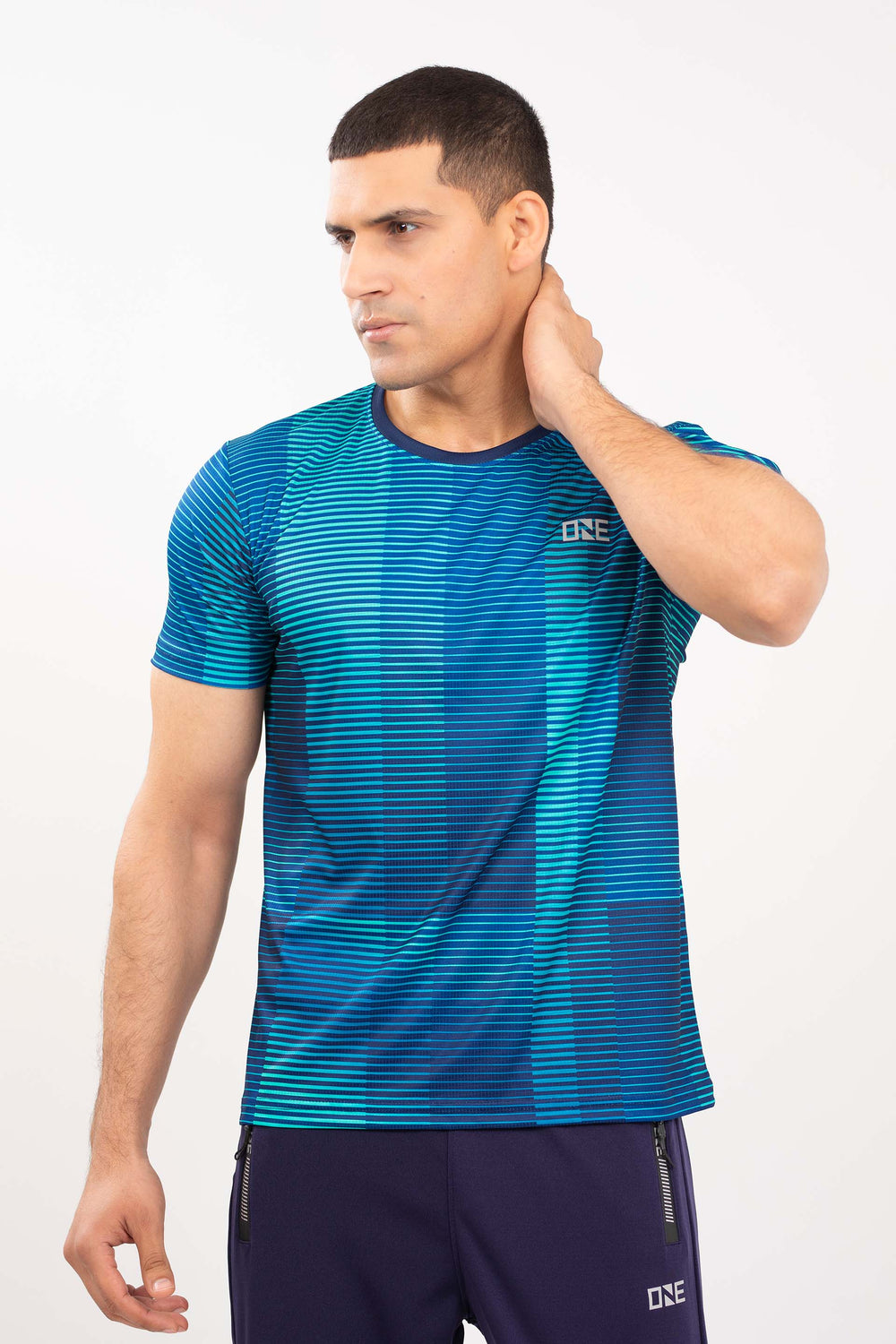 Gym tee shirt in dry fit fabrication, featuring short sleeves and crew neck