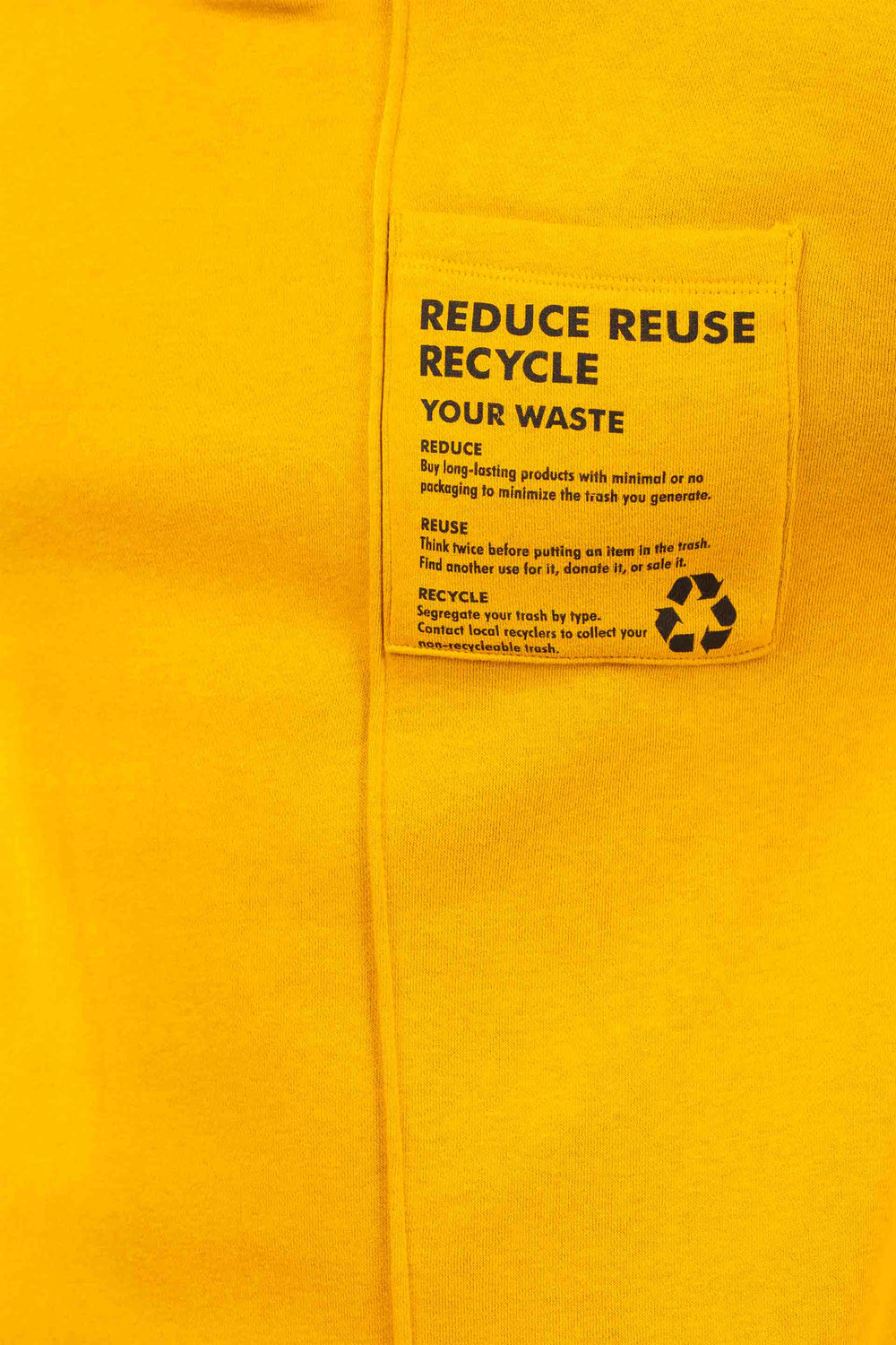 Fleece hoodie, featuring draw corded hood ribbed hem, side seam pockets and printed patch in front with pin-tuck pleat