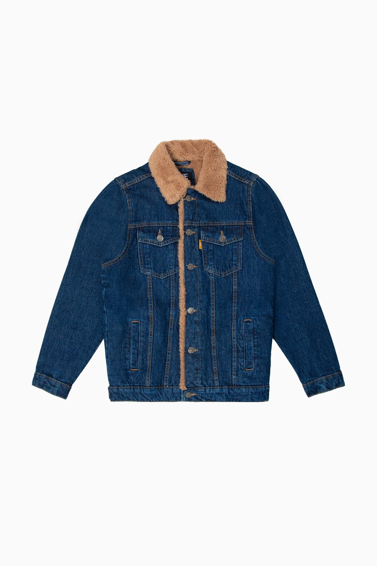Basic denim jacket, featuring sherpa collar and lining with full front buttoned placket