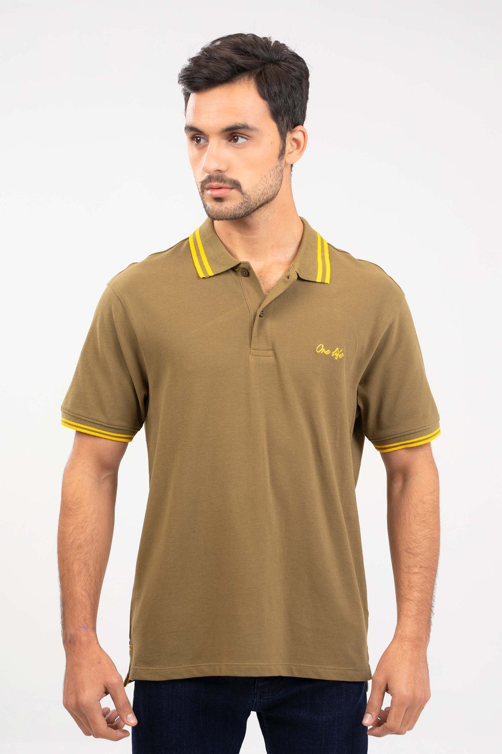 Comfort fit basic polo in pique fabrication, featuring front buttoned placket with tipping collar