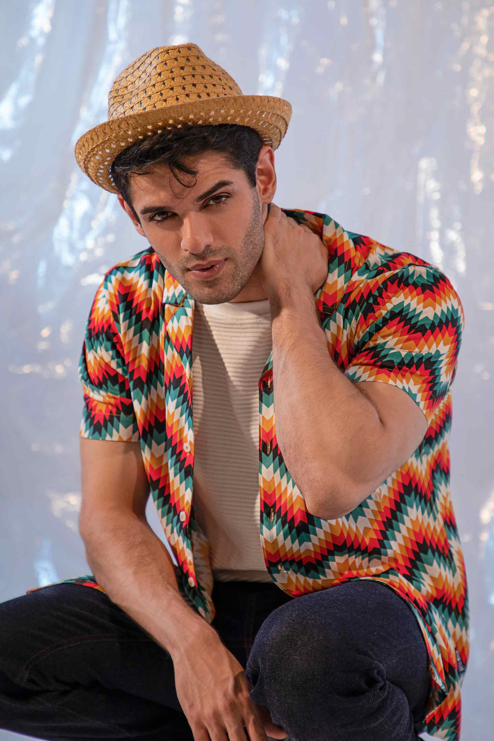 Relax fit shirt, featuring short sleeves, cuban collar and stripe pattern