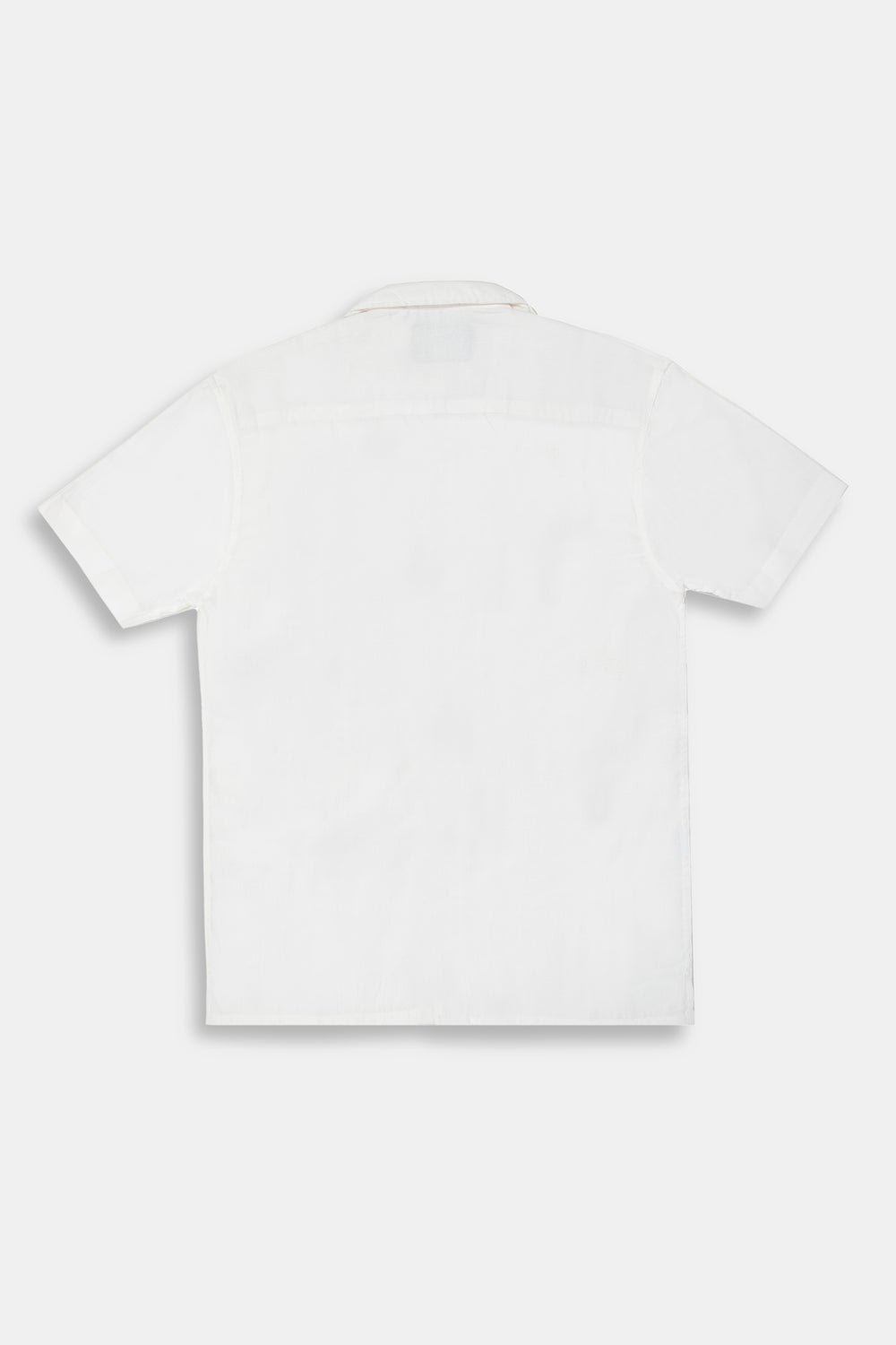 Relax fit shirt in cotton fabric, featuring front buttoned placket with Cuban collar and embroidery in front