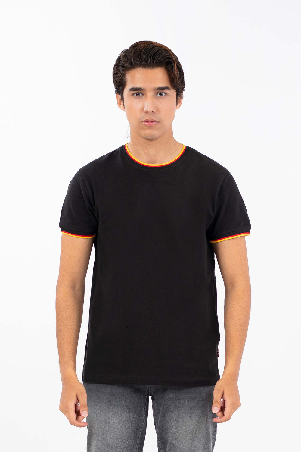 Pique textured tee, featuring ringer crew neck and short ringer sleeves