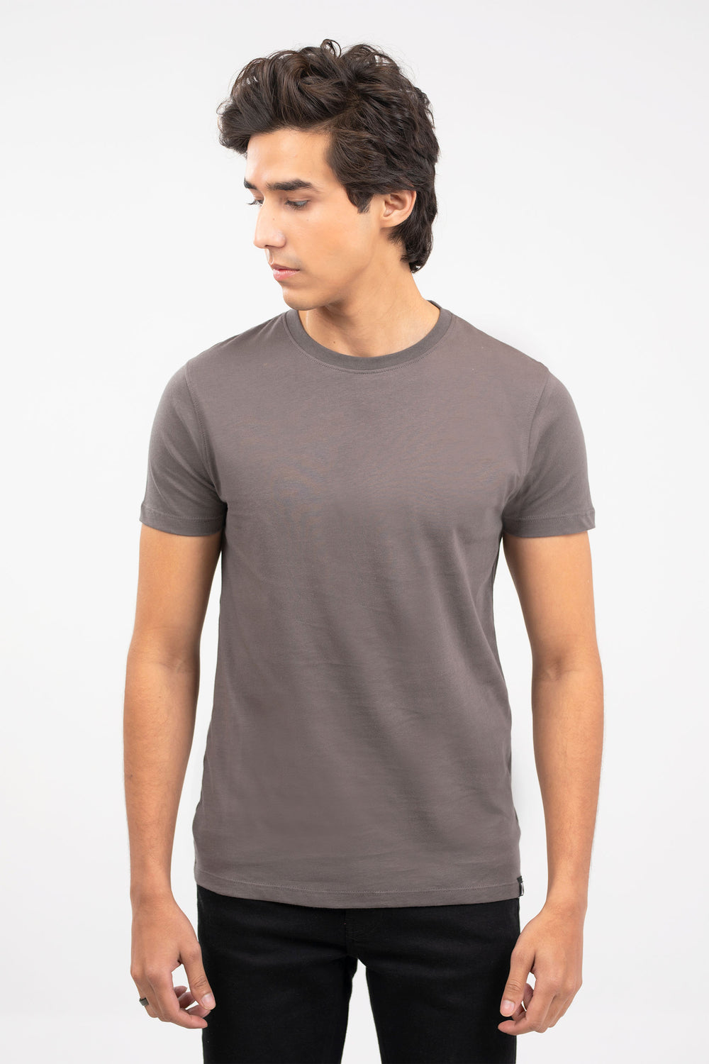 Basic crew neck tee shirt in jersey fabrication, featuring short sleeves