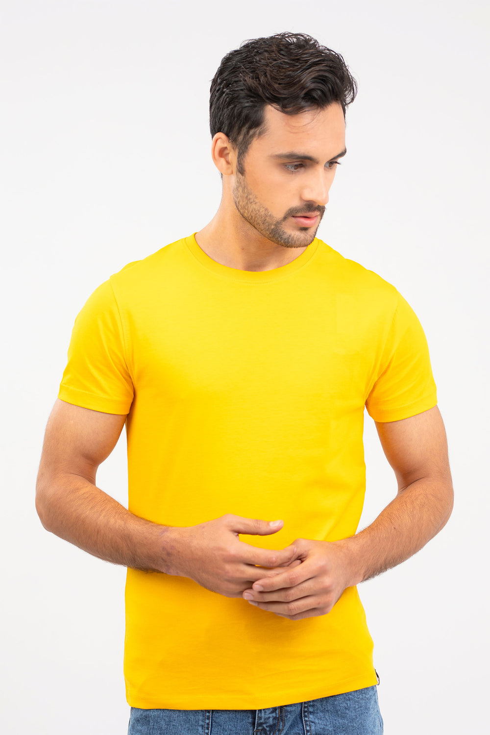 Basic crew neck tee shirt in jersey fabrication, featuring short sleeves