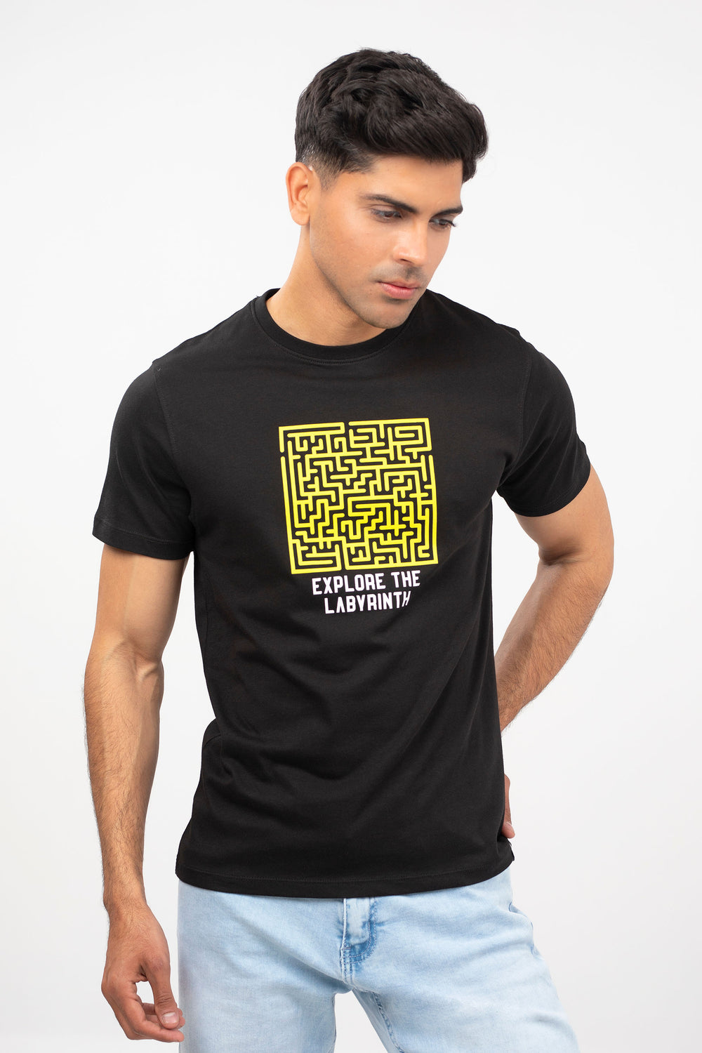 Crew neck tee shirt in jersey fabrication, featuring short sleeves and print in front