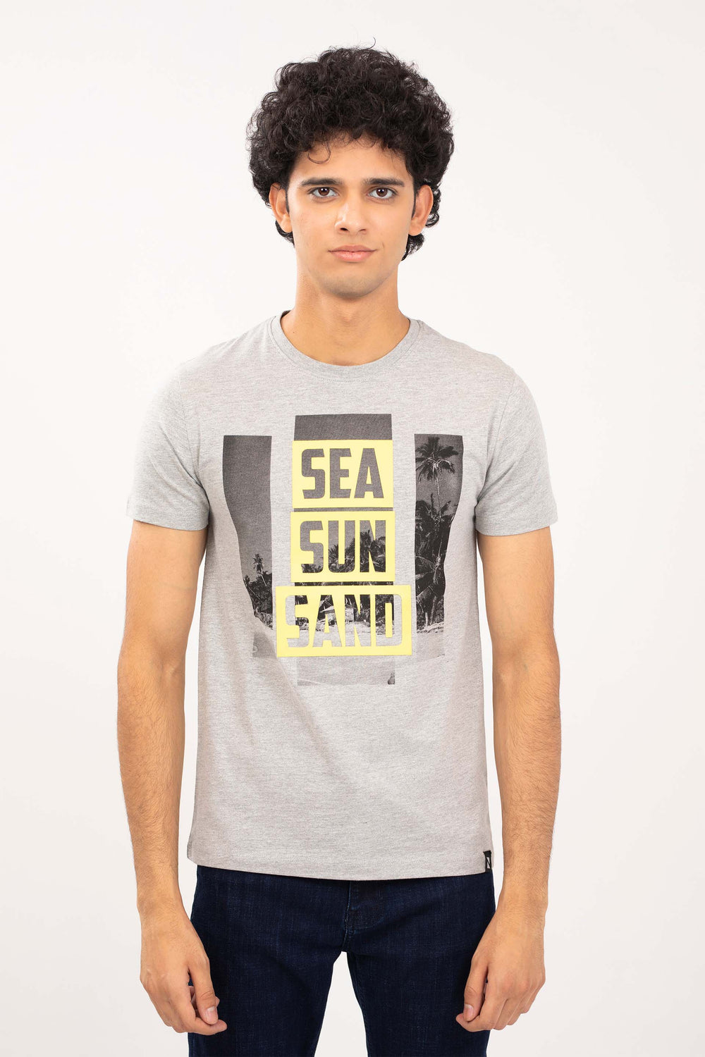 Crew neck tee shirt in jersey fabrication, featuring short sleeves and print in front