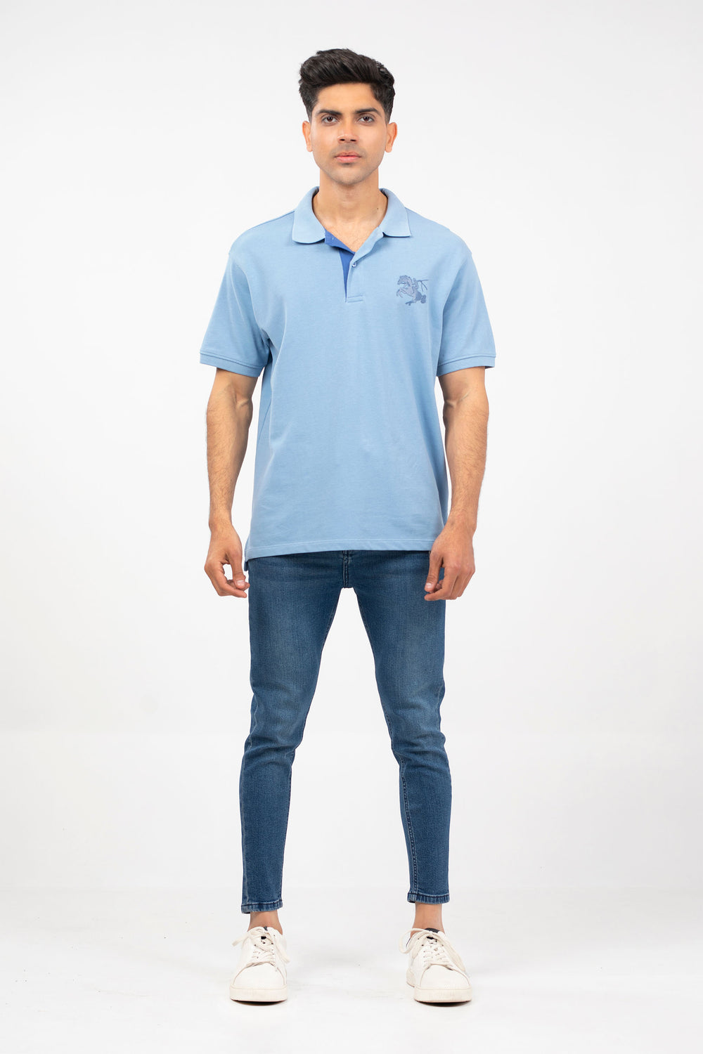 Comfort fit polo in pique fabrication, featuring front buttoned placket with collar and print in front