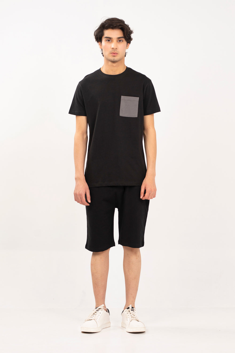 Crew neck tee shirt in jersey fabrication, featuring short sleeves and contrasting pocket in front