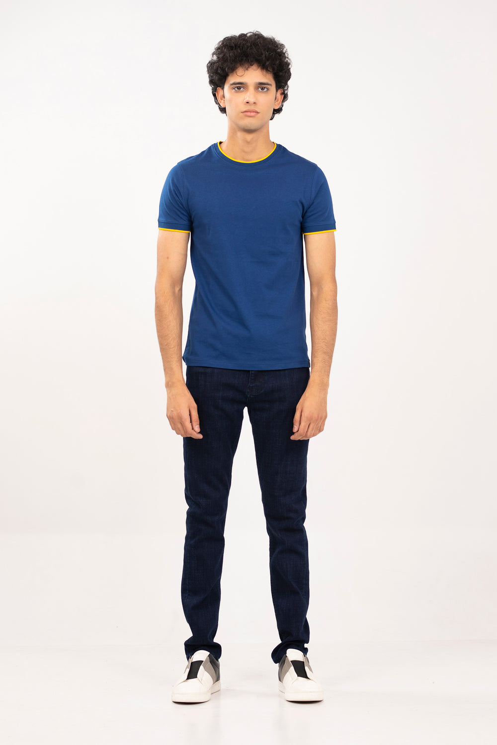 Basic crew neck tee shirt in jersey fabrication, featuring short sleeves with tipping detail at neck & armband
