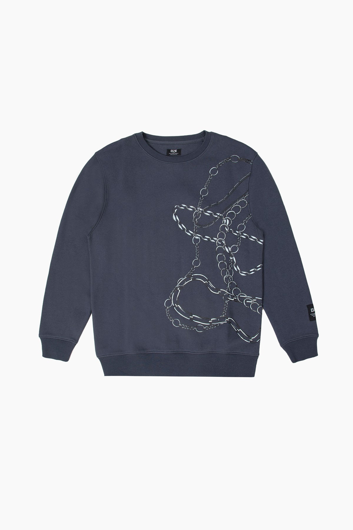 Regular fit sweatshirt in fleece fabrication, featuring crew neck with print in front