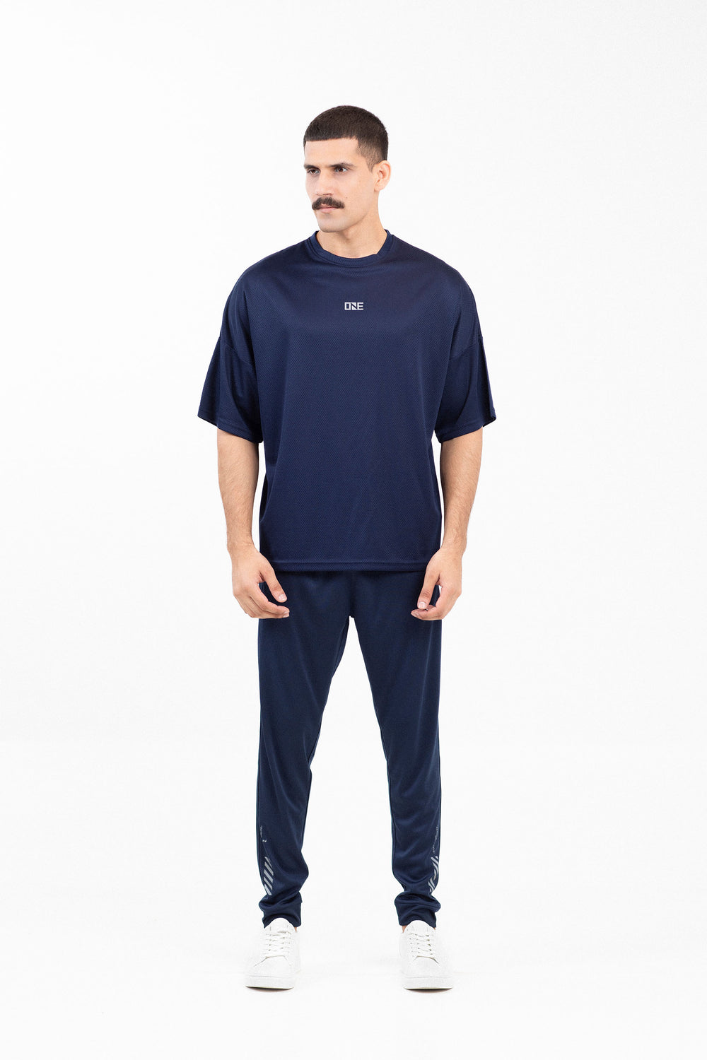 Baggy fit gym tee shirt in textured dry fit fabrication, featuring crew neck and short sleeves