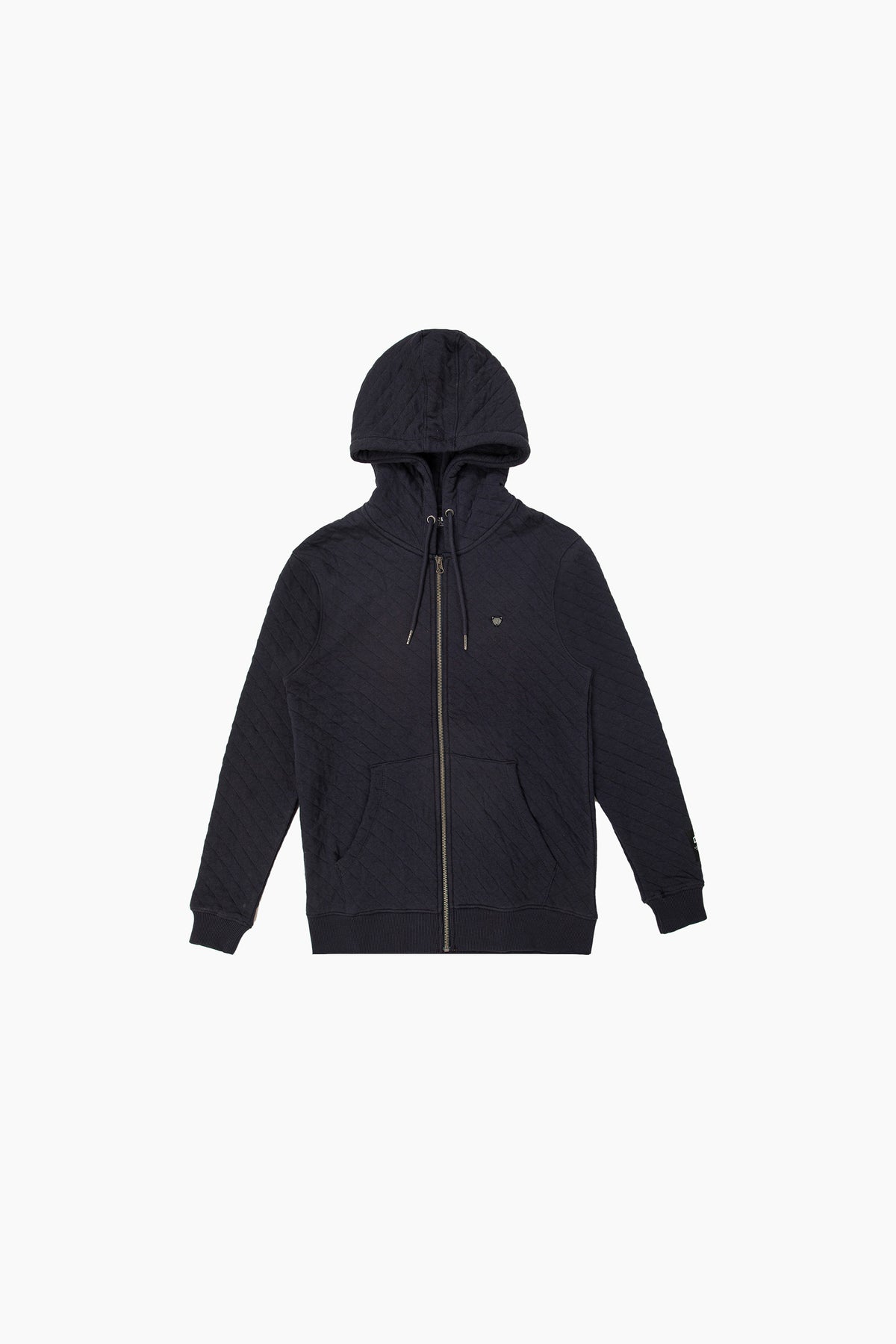 Regular fit zipper hoodie in quilted fabrication, featuring drawcorded hood and full front zip with kangroo pocket