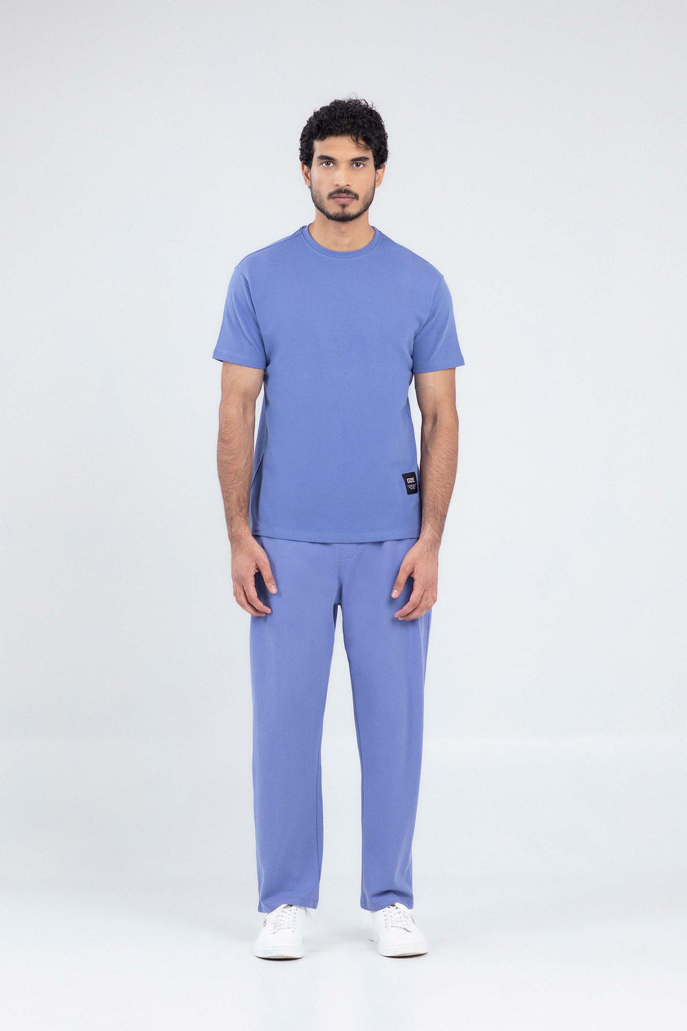 Comfort fit crew neck tee shirt in popcorn fabrication, featuring short sleeves
