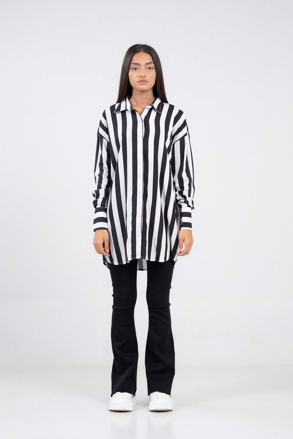 Short button down shirt in printed cotton blend fabrication, featuring full front buttoned placket