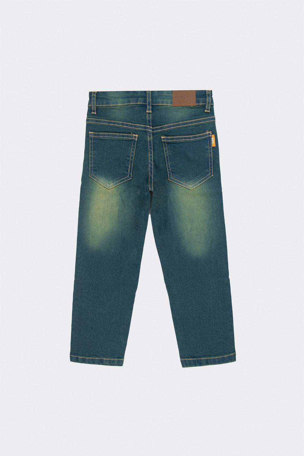 Slim fit jeans, featuring 5-pockets and front fly opening with dirty wash effect