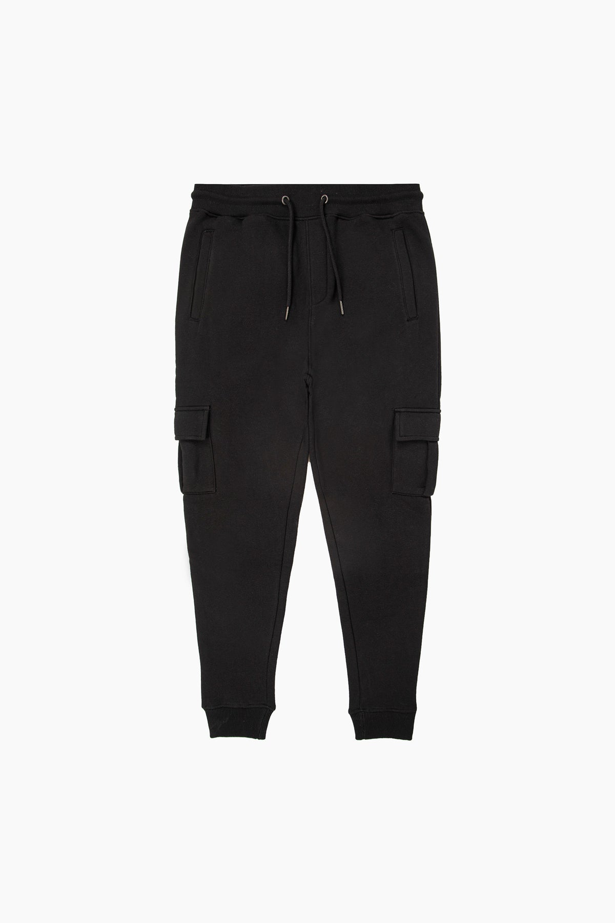 Regular fit cargo style jogger pants, featuring elasticated waist belt with drawcord and pockets
