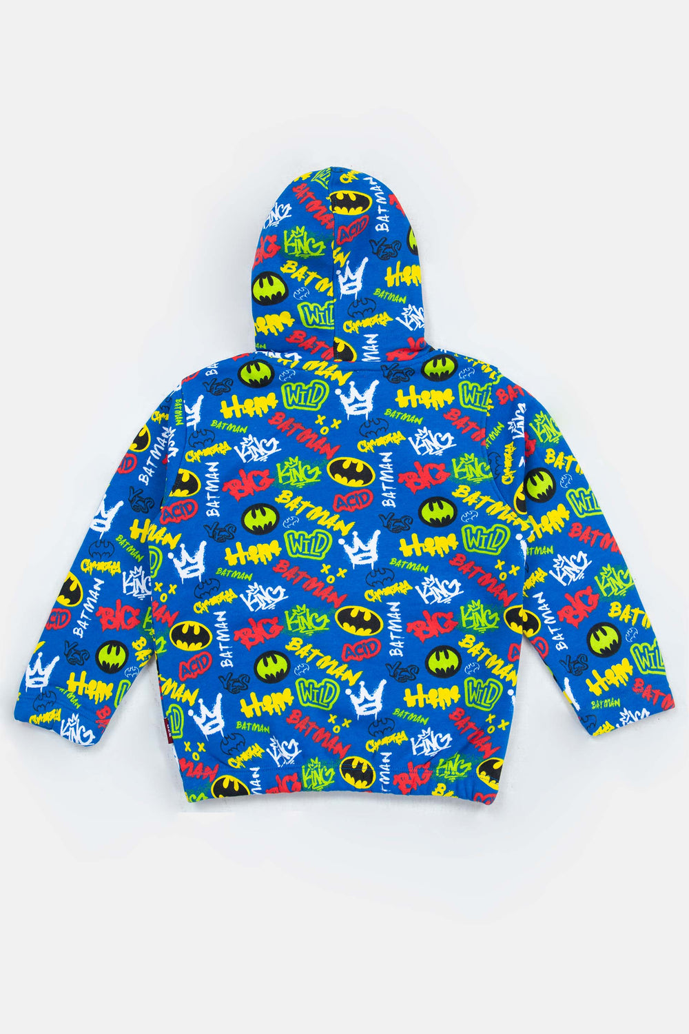 Fleece hoodie, featuring drawcorded hood, ribbed hem, kangroo pocket and an over all print