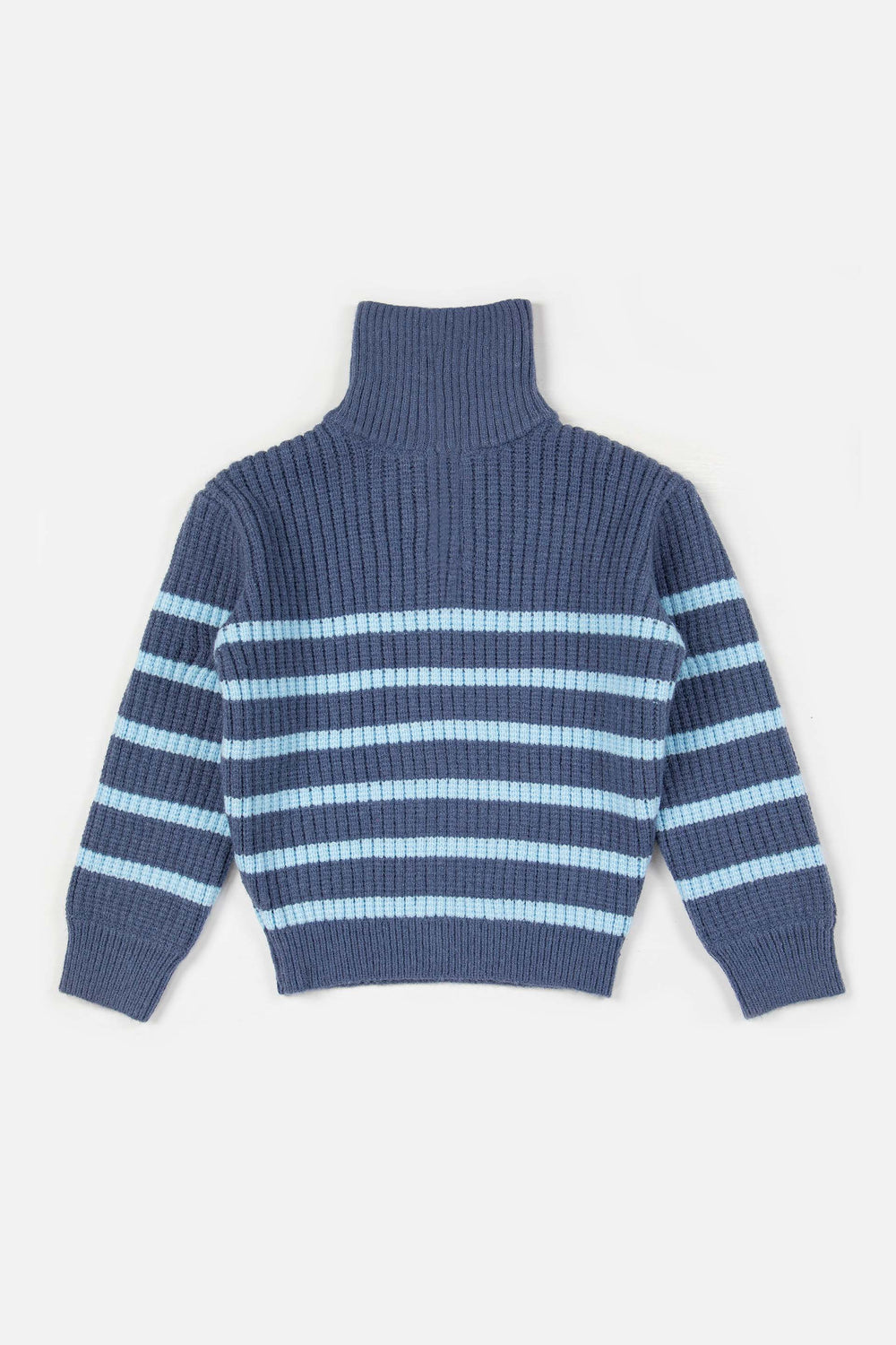Mock neck sweater in blended fabrication, featuring half zip opening in front with stripe pattern