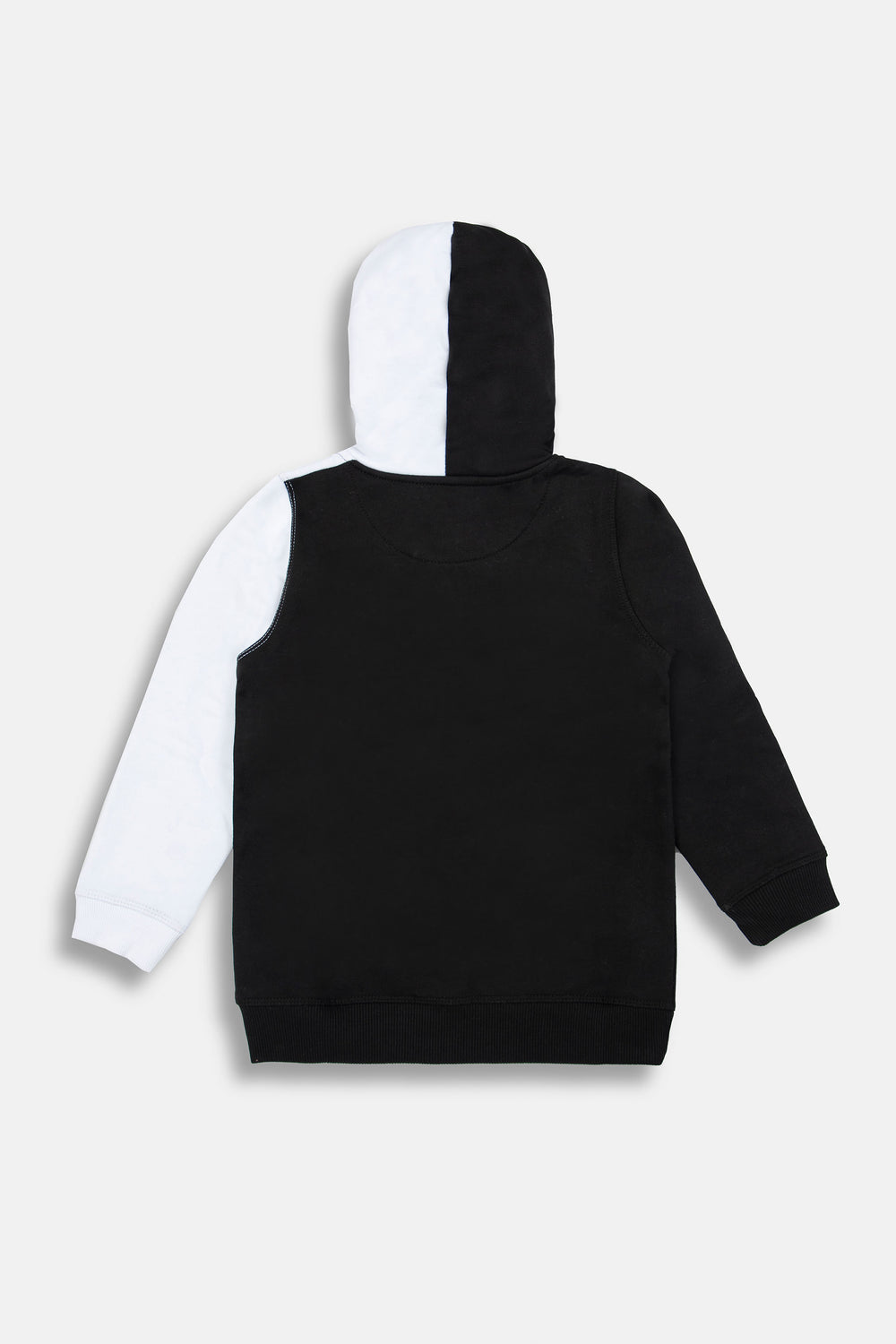 Fleece zipper hoodie, featuring hood, ribbed hem and embellishment in front