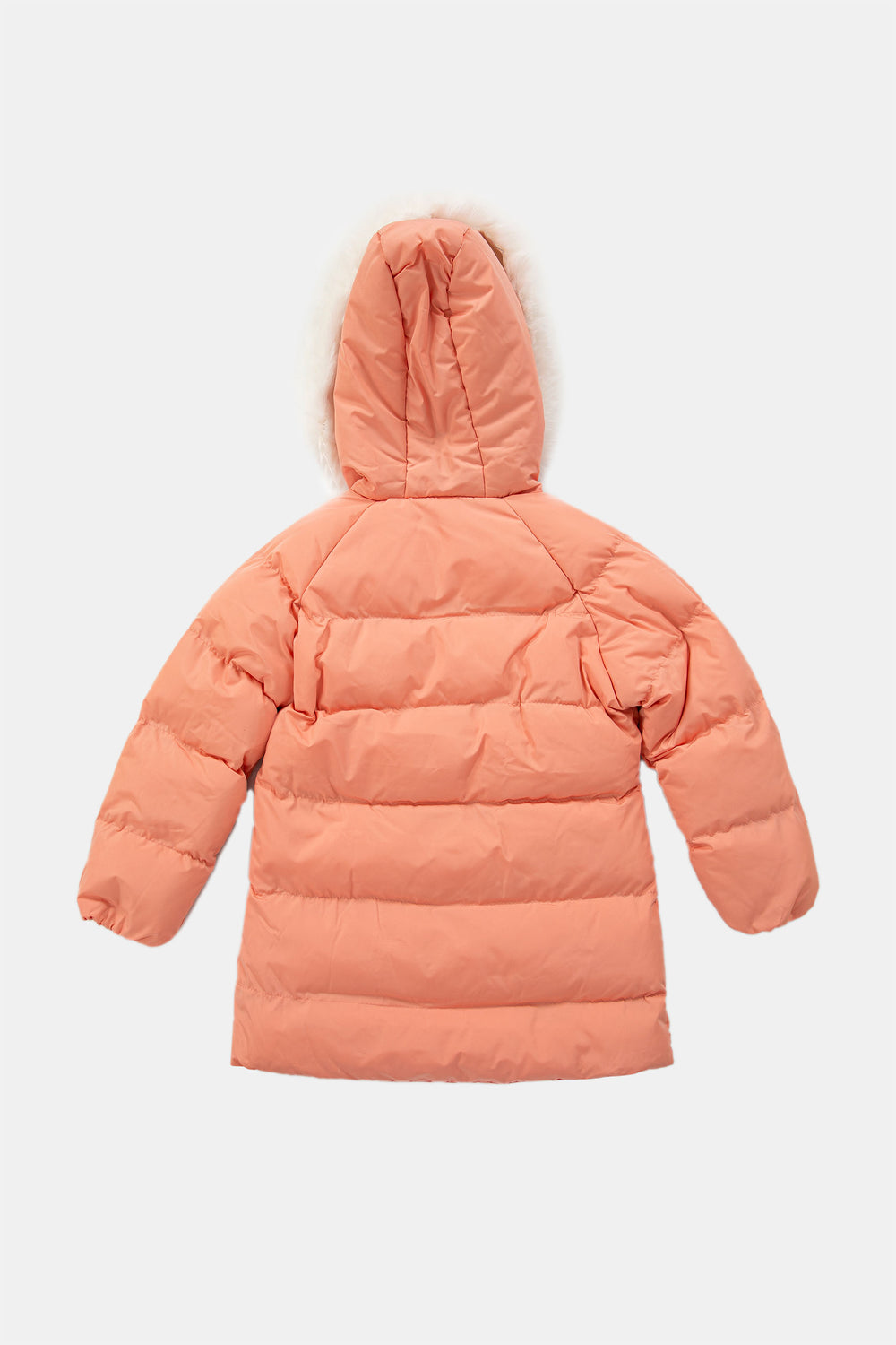 Puffer jacket in polyester fabrication, featuring full front zip opening, pockets and hood with faux fur trim