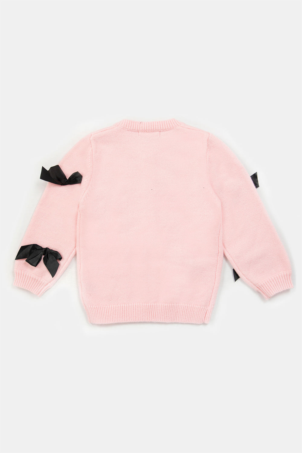 Cardigan style sweater, featuring full buttoned placket and contrasting bow detailing