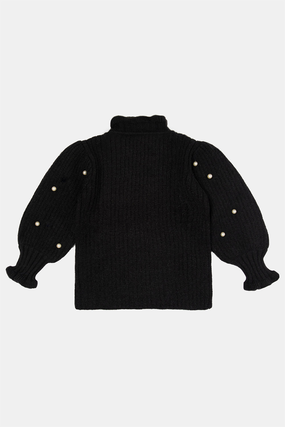 High neck sweater in blended fabrication, featuring voluminous sleeves with faux pearl detailing
