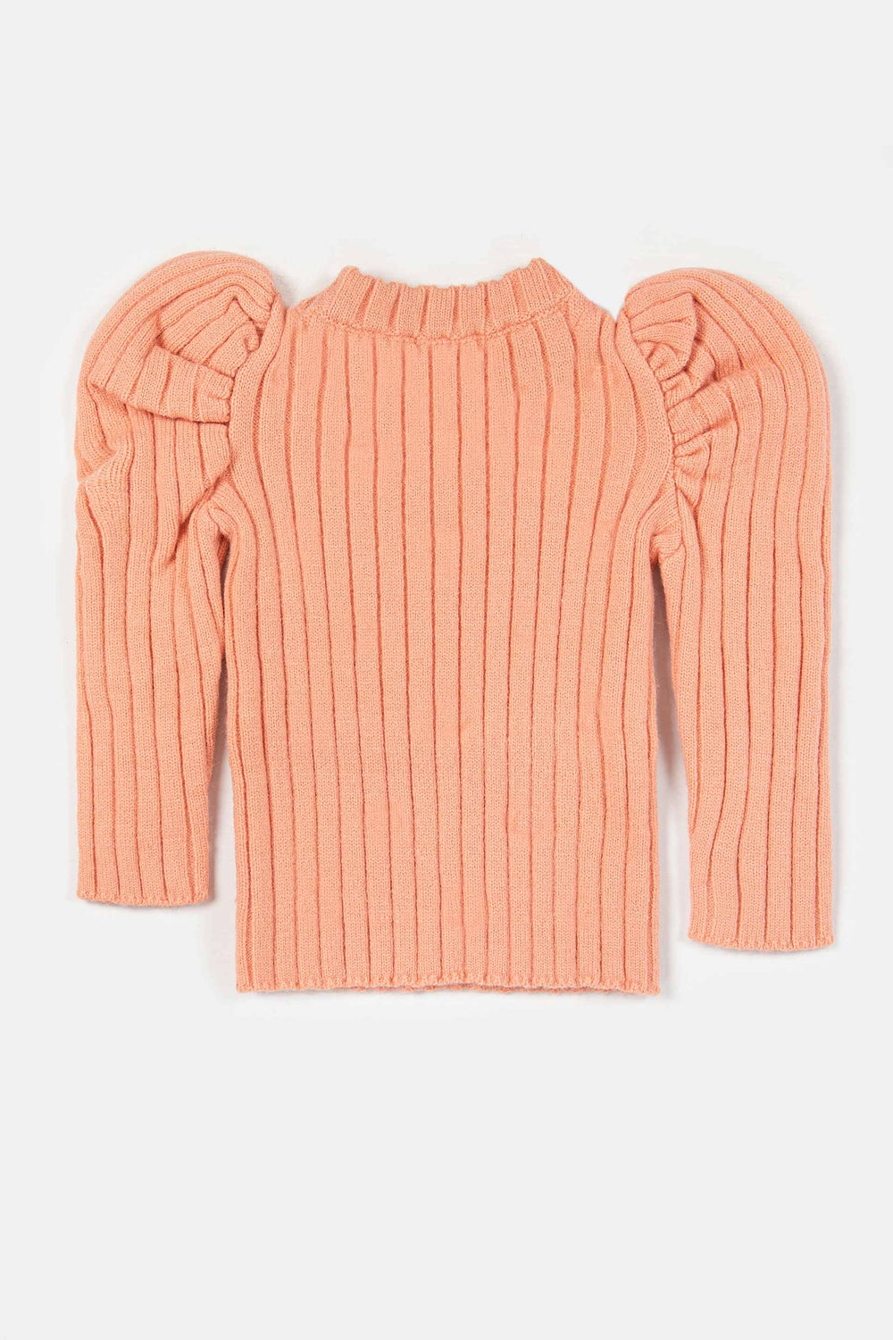 Crew neck sweater in blended fabrication, featuring long puff sleeves and faux pearl detailing in front