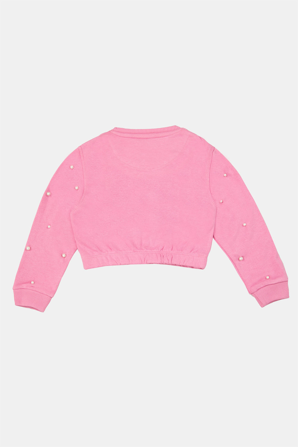 Terry dress, featuring crew neck and long sleeves, embellished with faux pearls