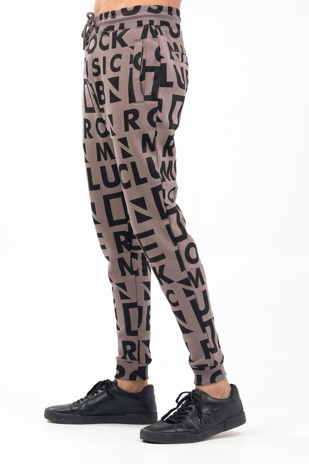 Fleece track pants, featuring drawcorded waist belt, ribbed hem and an over all print
