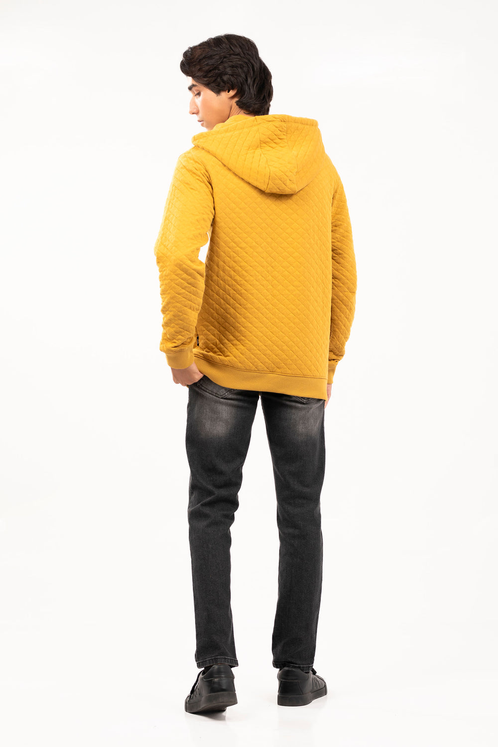 Premium basic hoodie in quilted fabrication, featuring drawcorded hood, pockets and ribbed hem