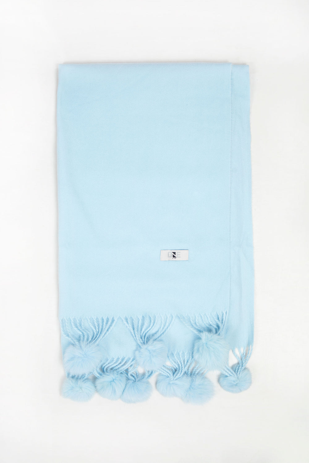 Scarf in blended fabrication with pom pom details