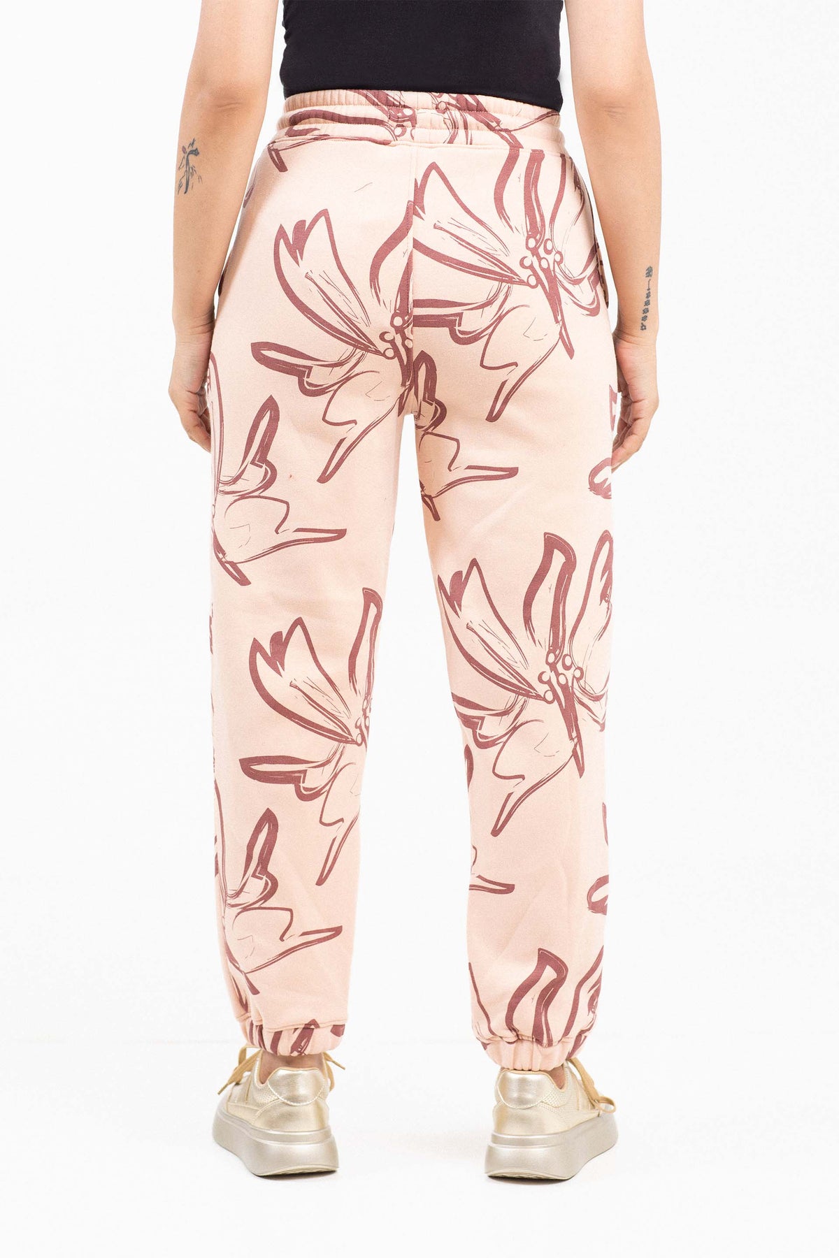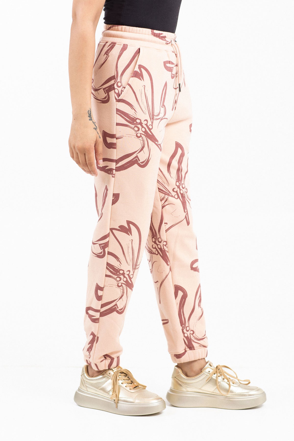 Jogger track pants in fleece fabrication, featuring elasticated waist belt with drawcord and an over all print