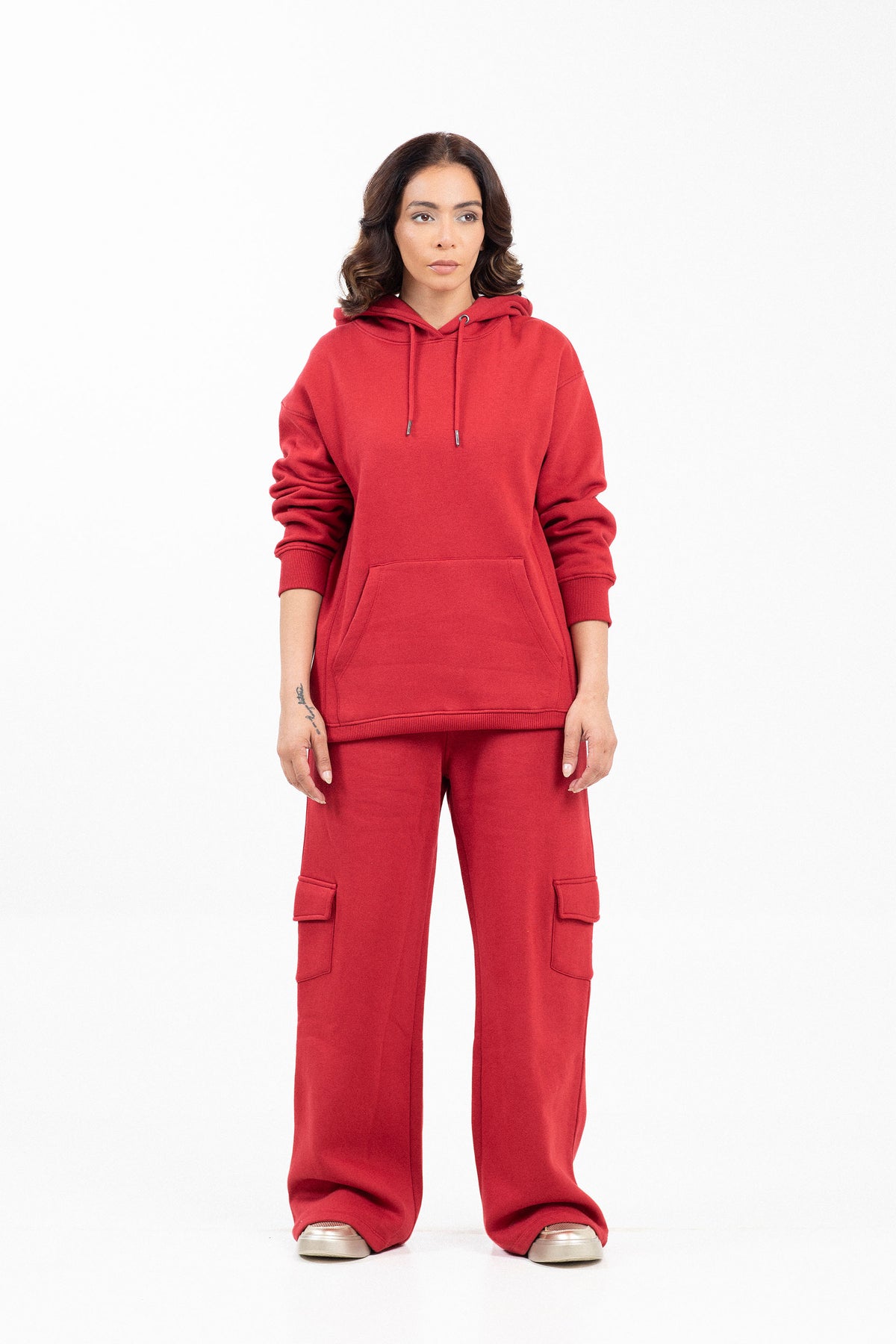 Baggy fit pullover hoodie in fleece fabrication, featuring drawcorded hood, kangroo pocket and side panels with ribbed hem